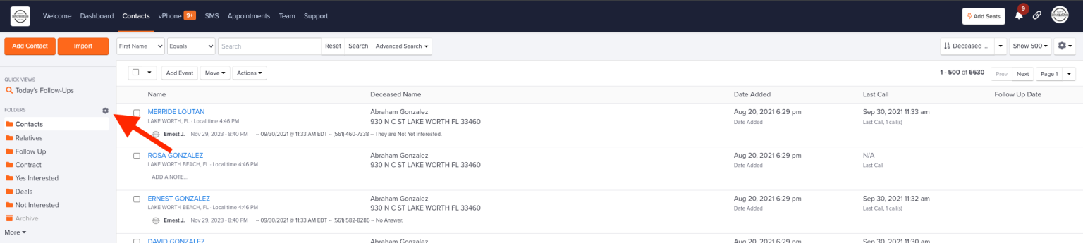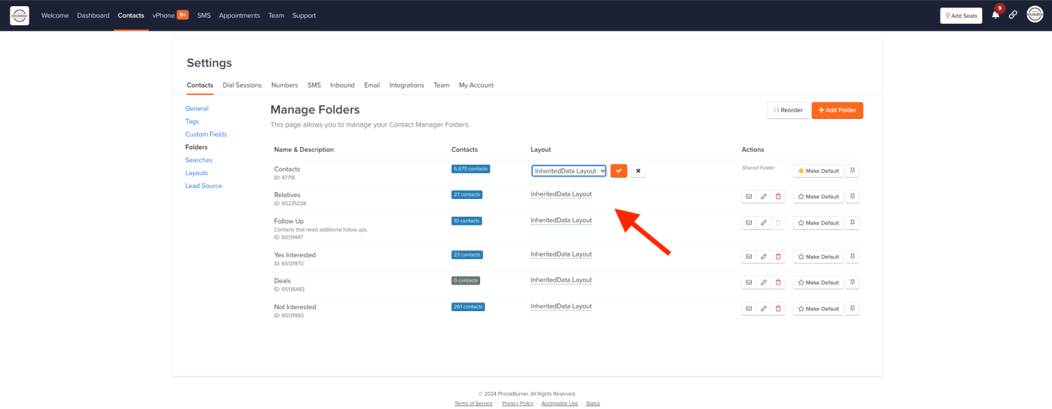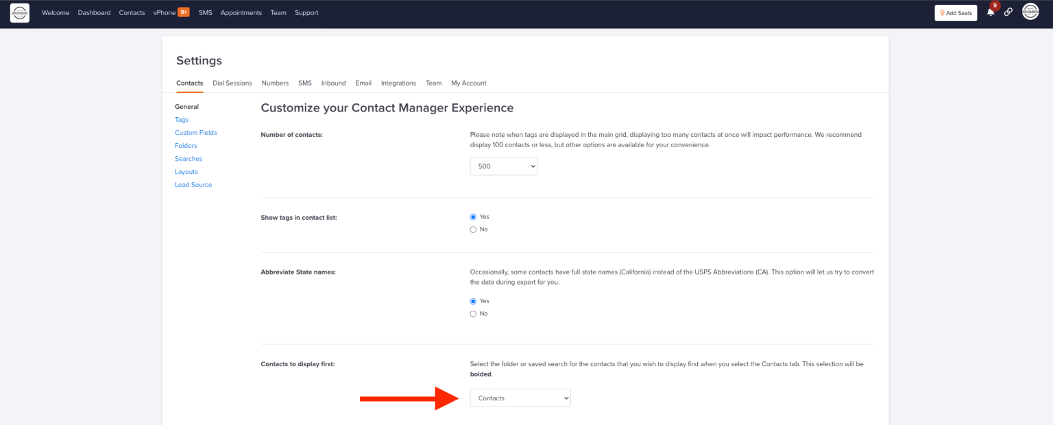 Select “Contacts” in the dropdown. This will display the Contacts Folder First.