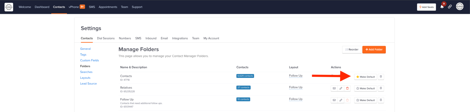 Benefit: Set Default folder are the contact folder. When the user clicks "Contacts", this is the default folder that is accessed.