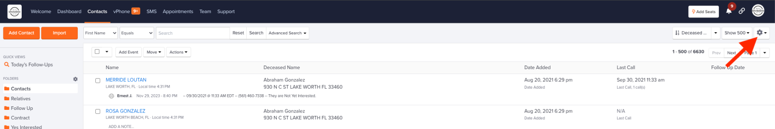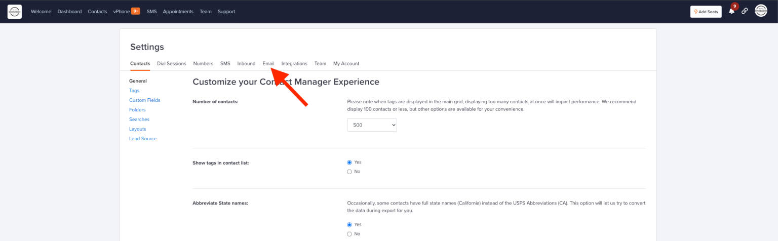 Click Gear from the contacts Page on the top right. Select “General” in the dropdown menu.