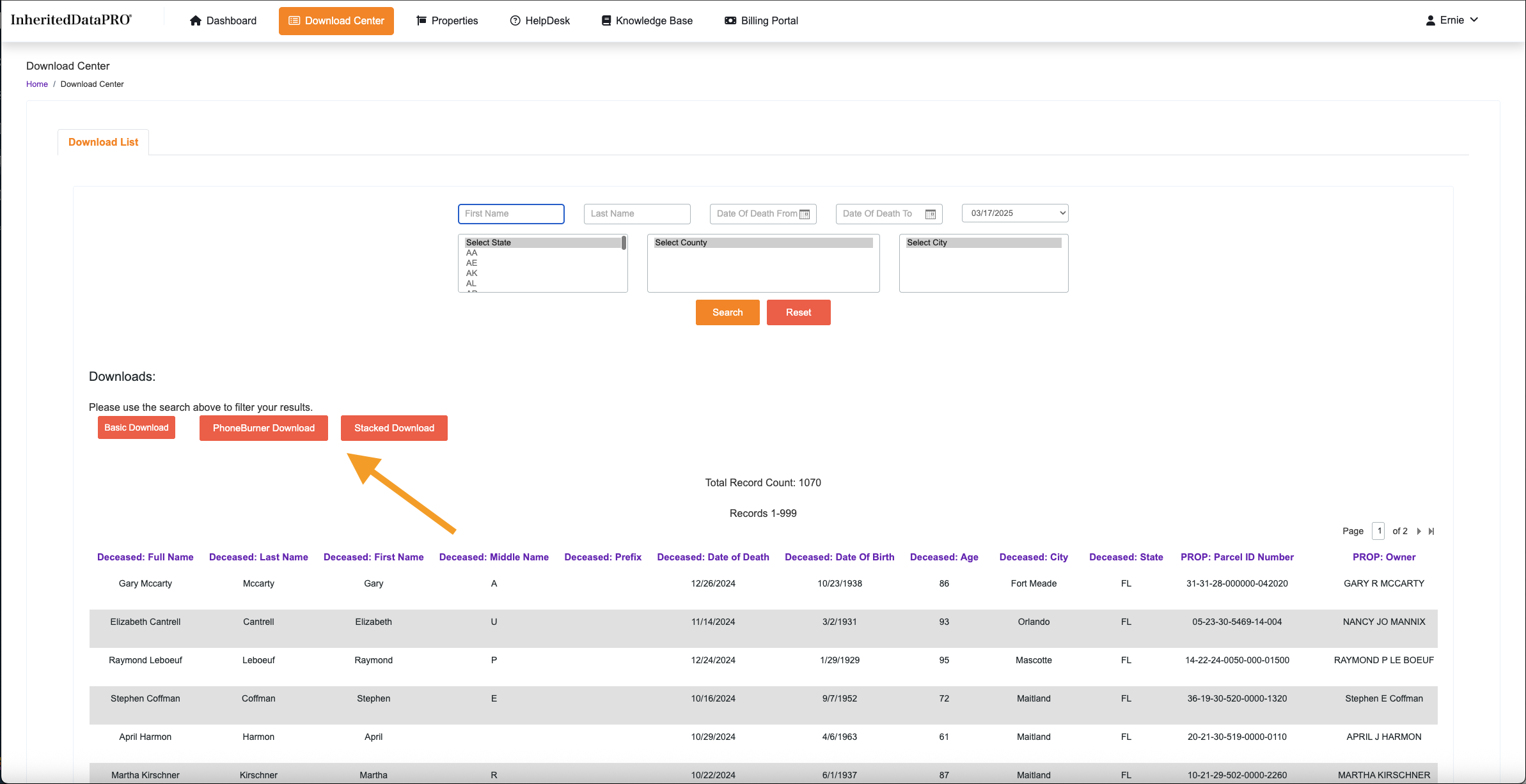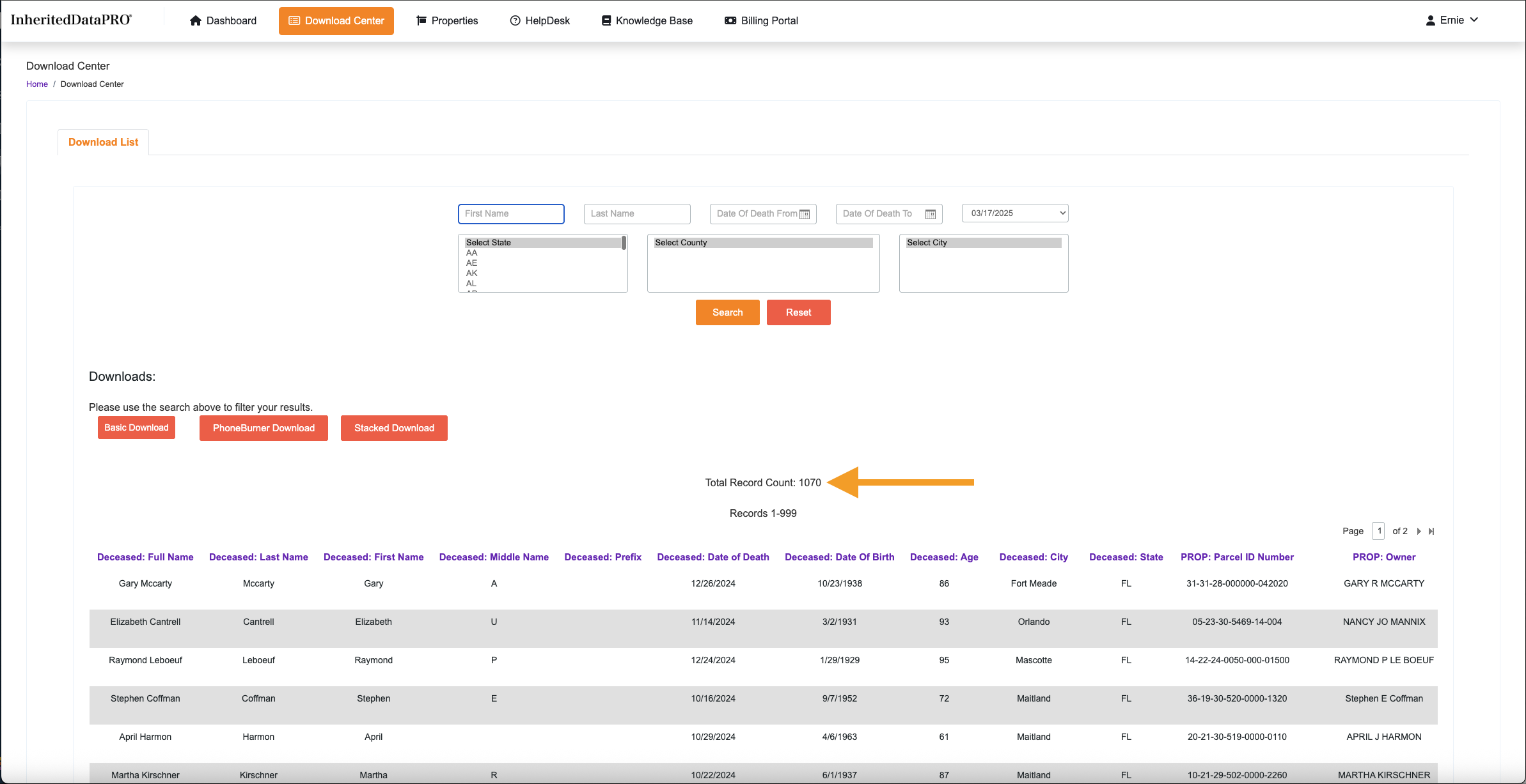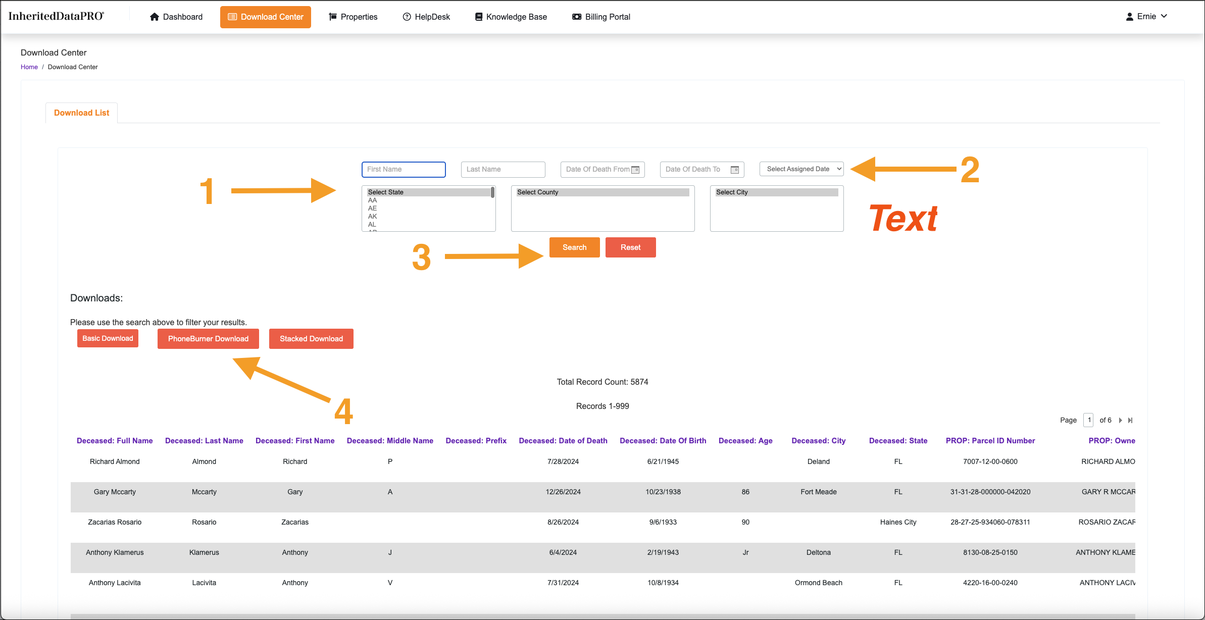 Located in the upper right hand corner of the search selections. This is really the only search you need. The Assigned date is when your InheritedData records are assigned to your Account.