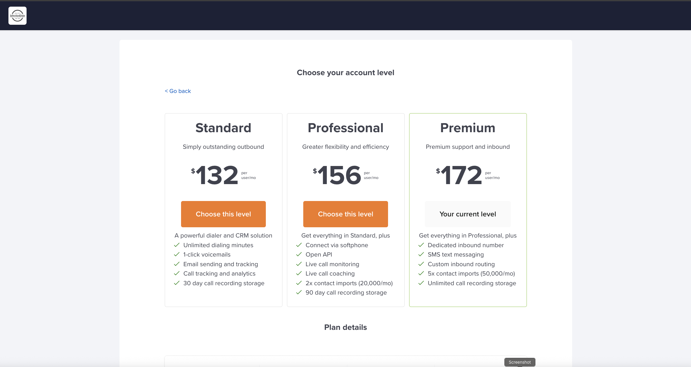 The Premium (recommended) gives the ability to also receive inbound cals with a dedicated caller ID, as well as, the ability to send texts with each outbound call.